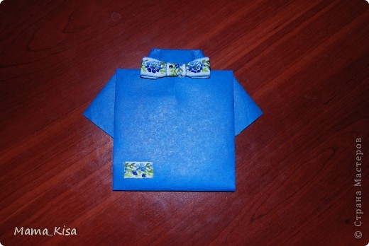 Выкладываю обещанный мастер-класс подарка-рубашки. Покажу как делать на обычной цветной бумаге - так нагляднее. С короткой стороны лист сгибаем на 3,5 см.
