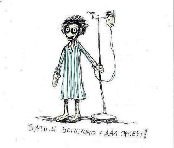 Вообще у меня есть такая черта тире проблема, как мне кажется, характерная для многих женщин. Я настолько ответственно отношусь к работе, что могу рисовать буквально сутками, пока не дойду до такого состояния, когда уже физически просто не могу работать. При этом я испытываю такое нервное напряжение, что просто забить и поспать совершенно не вариант - поскольку вместо сна это будет такая выматывающая полудрема с мрачными видениями. В общем, эта картинка 100% про меня