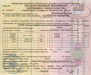 Я отслужил не понятно кому 25 лет в ВС. В 1998 году был уволен по сокращению без предоставления жилья, так как был закон, если имеешь квартиру в гарнизоне, то значит по линии МО офицер уже обеспечен жильем. Дальше вставай в очередь на квартиру в районную администрацию. После увольнения большей части офицерского состава и прапорщиков, имеющих право на жилье, был принят закон, что если не обеспечен жильем вне гарнизона, то не имеют право уволить. Прошло 10 лет после увольнения и мне предоставило государство сертификат на 4-х членов семьи на 1оооооо рублей. На отвяжись от нас и покупай что хочешь. Да я забыл, что судари способны еще на каждого жителя в год построить один кв. метр жилья и метр в глубину».