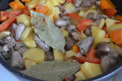Оригинальное сообщение Острое жаркое с куриными сердечками и картофелем Острое жаркое с куриными сердечками и картофелем Ингредиенты: 5-6 средних картофелины 500 г куриных сердец 1 морковка 1 помидор 1 луковица треть небольшого перчика чили пучок петрушки 2 лавровых листика растительное масло для жарки 1 ч л без горки паприки соль/красный перец Способ приготовления: Сердца помыть, обсушить. Убрать пленки и все ненужное! Разрезать на половинки. В сотейнике разогреть масло. Выложить сердца и обжарить со всех сторон. Влить полстакана воды и потушить 10 минут под крышкой! Добавляем морковь и лук и потушить еще 5-7 минут. Добавляем картофель, нарезанный на кубики размером с сердечки, мелко нарезанный чили и помидор. Влить еще 1 стакан воды. Солим, перчим, добавляем приправы. Накрыть крышкой и тушить на среднем огне 30-40 минут. За 5 минут до готовности добавить зелень. Готовое блюдо оставить под крышкой на 10 минут отдохнуть и можно подавать! Очень вкусно) Автор: Елизавета Лазарева