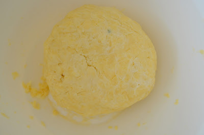 Готовое тесто разрезаем на кусочки размером с грецкий орех.