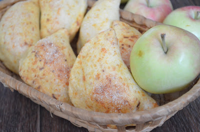 Оригинальное сообщение Яблочные пирожки из сырного теста Яблочные пирожки из сырного теста Если вы никогда не пробовали это тесто то вы многое потеряли! Это что то новенькое! Оно абсолютно универсальное - не соленое и не сладкое и отличается от простого песочного теста. Оно более мягкое, тонкое и очень нежное. Прекрасно ведет себя в работе, отлично слипается и раскатывается. Вы можете завернуть в такой пирожок любую начинку как сладкую: фрукты, ягоды, густой крем или любую несладкую...например мясо, грибы, лук с яйцом. У вас в любом случае получится восхитительное блюдо. Так же с ним можно сделать тарт или закрытый пирог! в нем нет яиц, а сыр можно взять старый, который уже не хочется есть просто так! угощайтесь) Нам понадобится: Для теста: 110-120 г сыра (обычного типа "Российского" или "Голландского") 150 г сливочного масла или маргарина 1/4 ч.л. соли 260 г муки 5 ст ложек ледяной воды Для начинки: 400 г яблок 1-2 ст.ложки лимонного сока щепотка мускатного ореха 30 г ванильного сахара 1/2 ч.л. корицы 2-3 ст.ложки молока для обмазки пирожков немного сахара для обсыпки СПОСОБ ПРИГОТОВЛЕНИЯ В большую миску просеять муку с солью и перемешать сыр натереть на мелкой терке Холодное масло нарезать на кубики к муке добавить сыр и масло, руками растираем все в крошку добавляем к крошке ледяную воду и замешиваем тесто. Скатать его в шар, завернуть в пленку и отправить в холодильник на 1 час Яблоки почистить и нарезать на маленькие кубики. Сбрызнуть лимонным соком, посыпать сахаром, мускатным орехом и корицей и перемешать тесто раскатать в пласт толщиной 3-4 мм. Вырезать большой кружкой круги (8-10 см в диаметре), в центр выкладываем начинку и формируем пирожок. выкладываем на противень, застеленный пергаментом или ковриком для выпечки, обмазать молоком и на каждый пирожок посыпать сахар Выпекать при 200 гр 25 минут...или 30! они доолжны зарумяниться, а сахар покроет пирожок бесподобной корочкой. Получилось примерно 14 пирожков...) Автор: Елизавета Лазарева