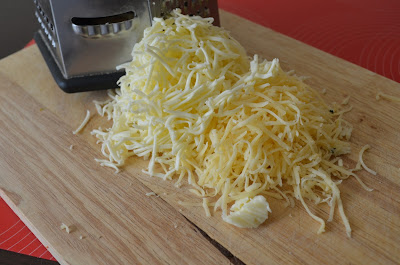 Посыпаем слой шариков тертым сыром. Сыра берите на свой вкус, можно присыпать чуть-чуть, а можно и обильно.