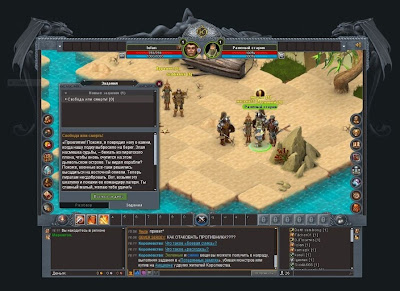 После нехитрых манипуляций мы попадаем в первую локацию (да, все правильно, именно локацию, т.к. игра предоставляет нам не привычный для браузерной игры текстовой вариант, а вполне себе приличную псевдо-3D графику), где мы встречаем таких же искателей приключений как и мы.