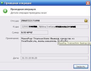 2010-04-02 22:06:00 (читать в оригинале)Сегодня я размещу очередное доказательство того, что деньги в Интернете есть.