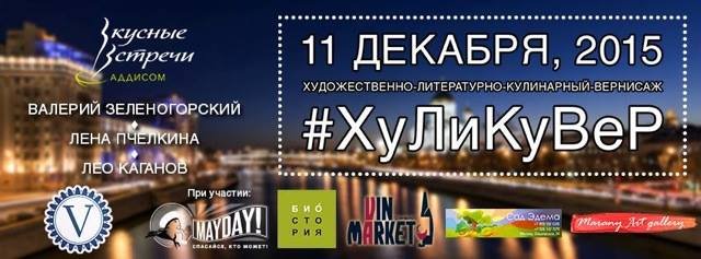 Это высокоэлитарное мероприятие, куда меня пригласили почитать стишки потому что Саша Елин в отъезде — Художественно-Литературно-Кулинарный-Вернисаж #ХуЛиКуВер: литературные чтения + дегустация блюда и биодинамических вин + выставка картины известных современных художников и аукционы. То есть, процитирую: «сыры от сырников, вина с виноградников, художества от художников».