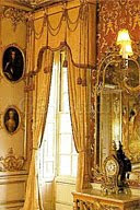 Начнем с ламбрекена. Это верхняя, отдельная часть шторы, висящая под самым карнизом. Ламбрекен может быть мягким или жестким. Последний специалисты называют шабраком. Как правило, ламбрекен шьют из строгих тканей – дамаста, парчи, бархата – и декорируют шнуром или тесьмой. Часто для ламбрекена используется та же ткань, что и для обивки мебели. По форме его нижний край может повторять силуэт какой-нибудь детали мебели, например спинки кровати или резной панели шкафа.