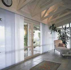 Все больше своих почитателей находят так называемые панельные японские шторы, представляющие собой прямые полотнища ткани, прикрепленные к карнизу с помощью липучек и передвигающиеся по направляющим вручную или с помощью раздвижной веревочной системы.