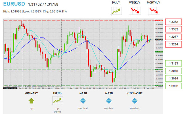 Форекс прогноз пары "Евро Доллар" на 02 февраля 2012 года