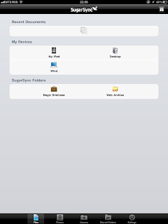 Итак, как я уже рассказывал, все мои рабочие документы (а это почти 10 гигабайт) хранятся у меня облачном хранилище Sugarsync и доступ к ним у меня имеется из любого места, благо для iOS есть полноценный клиент Sygarsync. Итак, открываем его
