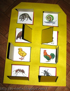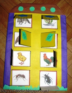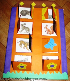 Потом закрыли окошки и искали кису (петушка, белку..). Развивали внимание.