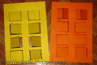 Для изготовления нужно 3 листа цветного картона. На двух из них обводим по контуру картинки - намечаем окошки.