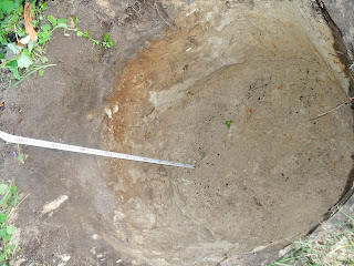 Вот, те ямы, что я готовил осенью 2010. Я трачу более половины дня на одну яму. Пока выроешь, пока вывезешь тачками вырытый грунт за пределы участка, пока завезешь новый – вот так и получается. На фото видно, что глубина у меня 90 см. Заметьте, какой у меня плодородный слой – аж 25 см серого песка, ну а остальные 65 см чистейшего желтого песочка :).