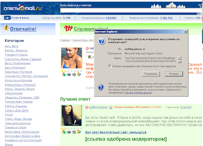 Попался мне этот вирус на сервисе ответов от майл.ру. Что еще раз доказывает - даже на известном и очень знакомом ресурсе можно подхватить всякую пакость.