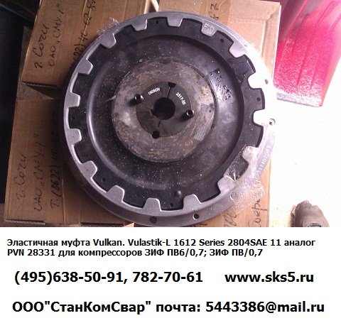 2012-10-09 11:10:57 (читать в оригинале)Эластичная муфта Vulkan. Vulastik-L 1612 Series 2804SAE 11 аналог PVN 28331 для компрессоров ЗИФ ПВ6/0,7; ЗИФ ПВ/0,7