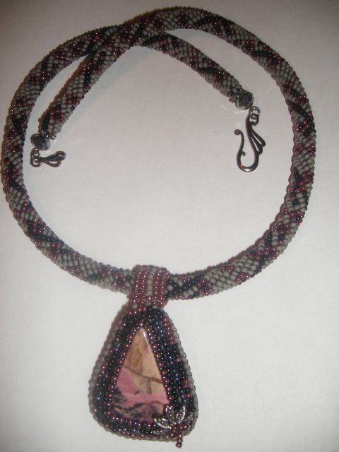 2012-09-19 10:37:45 (читать в оригинале)Кулон выполнен из чешского и японского бисера, с натуральным камнем родонита, фурнитура под черненое серебро! к кулону Серьги в подарок! товар со скидкой на камушке имеется не большой скол!!!!!!!!