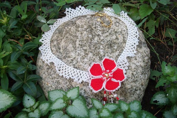 2012-09-19 11:07:19 (читать в оригинале)Колье сплетено из чешского бисера, с красивым коралловым цветком