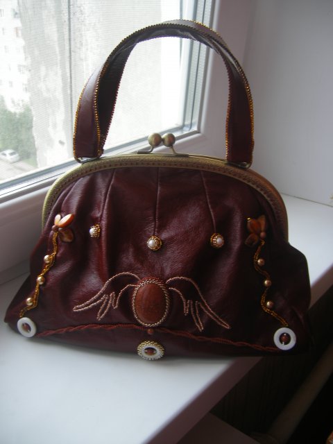 2012-09-18 23:26:25 (читать в оригинале)Сумка сшита в ручную из натуральной кожи и вышита бисером! ручки кожаные жесткие, обшиты так же бисером! Фермуар 24 см! Внутри имеется кармашек!