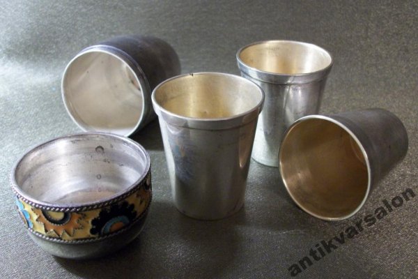 2012-11-17 20:13:22 (читать в оригинале)Набор стопок в футляре, позолота, серебро, перегородчатые эмали.
