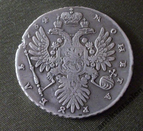 Рубль 1734 г Анна ОРИГИНАЛ. Со скошенным лбом.