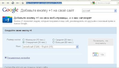 Перед нами откроется вот такая вот картинка.Здесь мы выбираем размер кнопки гугл плюс и язык,затем спускаемся вниз.