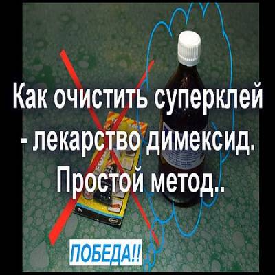 Сегодня я расскажу и покажу, как оттереть или очистить супер клей с пластика. Возможно и не только с пластика, также с любой другой поверхности, если Вы к примеру ее нечаянно запачкали ее супер клеем или молекулярным клеем. Метод до боли простой и состоит в том, что мы стираем наш клей при помощи лекарства - димексид.