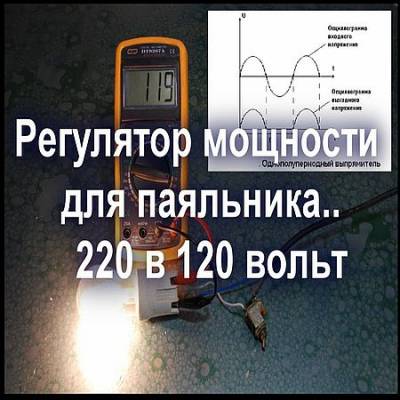 В сегодняшнем видео я расскажу, как сделать простейший регулятор напряжения для паяльника или лампы накаливания. Схема достаточно известная и состоит всего из одного диода. По сути - это однополупериодный выпрямитель напряжения. Он ограничивает сетевое 220 до 120 вольт, что прекрасно подходит для ламп накаливания или паяльника, чтобы выключать последний когда временно не пользуетесь..
