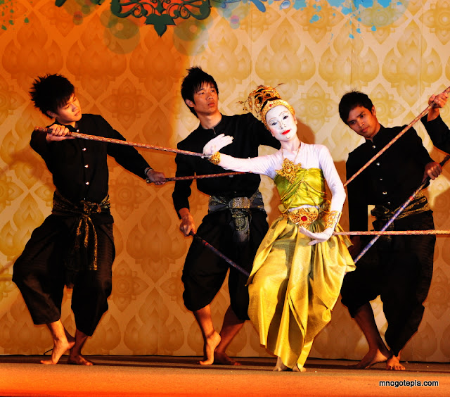 На площади рядом с музеем, уставшие от новогоднего безумия, наблюдали красочное, яркое представление театра лакхон, но в качестве марионеток здесь выступают люди...