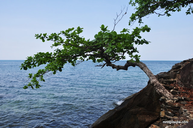 Вдоль западного побережья острова расположены основные пляжи, где кучкуются туристы. Восточный берег более спокойный, без "морковных" баров...