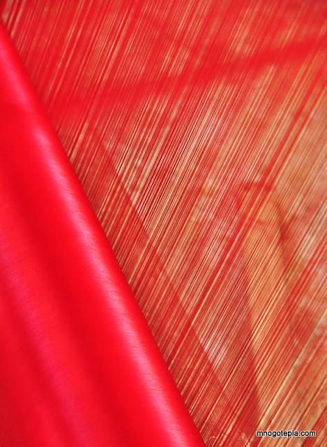 Шелковая нить из одного кокона по длине иногда доходит до 1,5 километров и имеет треугольное сечение, из за этого шелк переливается на свету. На 1кв.м. ткани уходит до 3500 коконов.