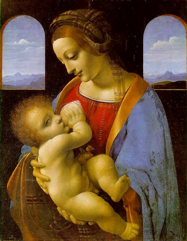 Обняв дитя своей рукою тонкой,