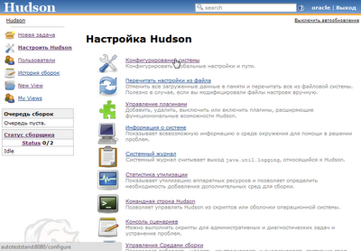- Зайти в консоль Hudson, затем "Настроить Hudson" -> "Конфигурирование системы":
