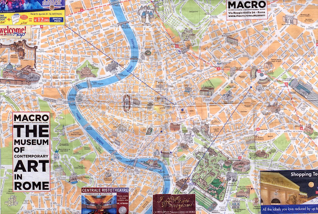 Туристическая карта Рима в большом размере. Кликните на карте чтобы увеличить ее. Чтобы скачать туристическую карту Рима, просто кликните на изображении правой кнопкой и выберите "Сохранить".Хочу сразу предупредить, что масштаб туристической карты Рима довольно большой, и расстояние которое кажется можно преодолеть за 5 минут, потребует всех 20. Поэтому, рекомендую купить проездной на день, он стоит 4 евро и пользоваться для экономии времени. Один проезд в метро или автобусе стоит 1 евро, так что проездной окупается мгновенно.