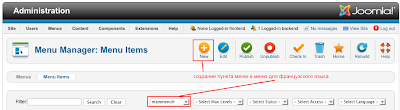 После этого, добавленный Вами «языксодержания» будет доступен во всехсоответствующих меню админки Joomla1.7