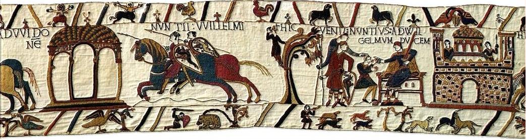 До наших дней сохранился огромный ковер из собора в Байё (XI в.), изображающий завоевание Англии норманнами. Он вышит шерстяными нитками восьми цветов на полосе 70 м длиной и 50 см шириной. Этот ковер служит своего рода художественной энциклопедией жизни XI в., так как на нем изображены сотни персонажей: и земледельцы, и ремесленники, и кораблестроители, и солдаты. Здесь и сборы в поход, и отплытие кораблей, и жаркие схватки.