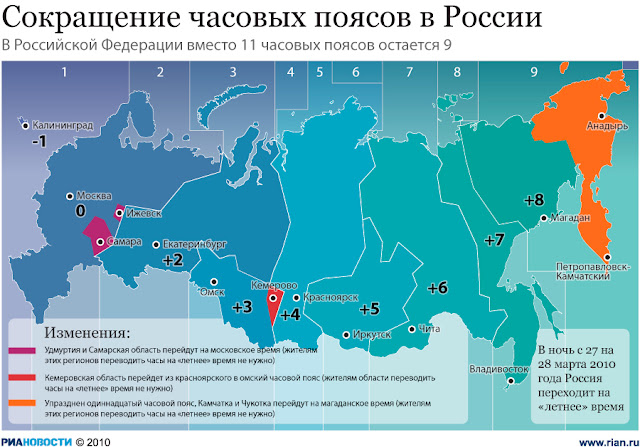 Изменения в часовых поясах можно посмотреть в таблице: