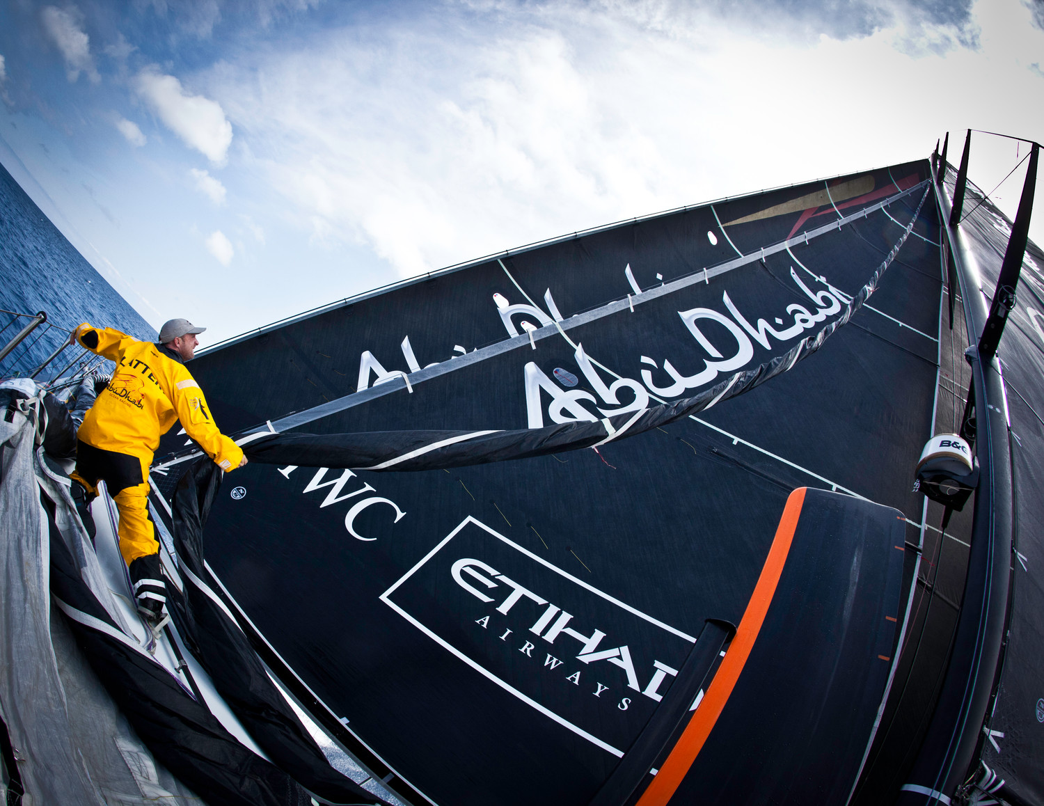 Джастин Слаттери работает с парусами, 27 февраля. Фото: Nick Dana/Abu Dhabi Ocean Racing