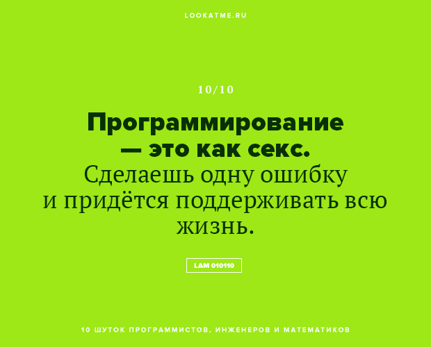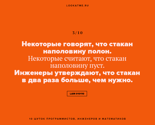Не мог не утащить к себе пост ребят от LookAtMe. Топ 10 шуток программистов, инженеров и математиков.