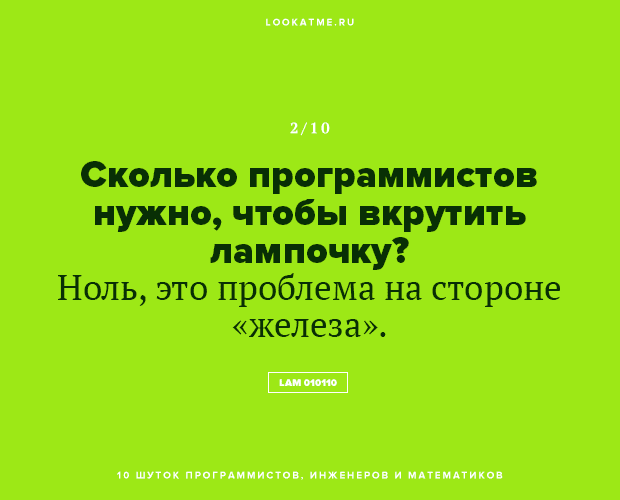 Самые смешные шутки рождаются у людей, которые не любят болтать попусту. Мы разузнали, над чем смеются математики, инженеры и программисты, и выбрали самые понятные шутки.
