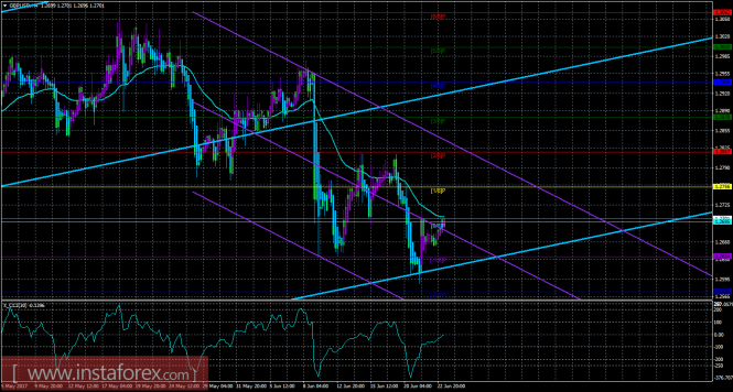 Хайкен Аши – индикатор, окрашивающий бары в голубой или фиолетовый цвета.Материал предоставлен компанией InstaForex - www.instaforex.comТехническая картина валютной пары GBPUSD по системе «Каналы регрессии» за 23 июня 2017 года