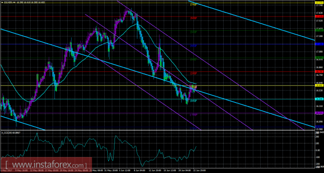 Техническая картина инструмента SILVER по системе «Каналы регрессии» за 23 июня 2017 года