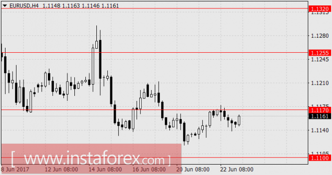 Развитие движения цены инструмента (EUR/USD) в период 23_30 июня 2017 г. будет обусловлено отработкой границ канала 1/2 Median Line (1.1140 <-> 1.1155 <-> 1.1170) вил операционного масштаба Micro.