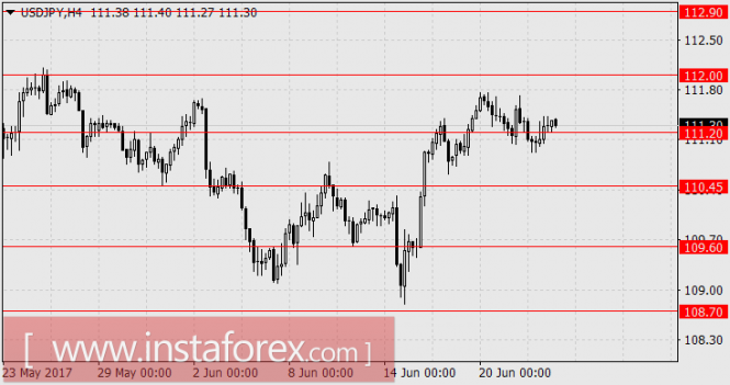 Индекс деловой активности в производственном секторе Японии в июне снизился с 53,1 до 52.0, теперь влияние американского фондового рынка возрастает. По США сегодня ожидаются хорошие показатели PMI и продаж недвижимости, мы также надеемся на этот рост и ждём рост йены к 112.00 и далее к 112.90.