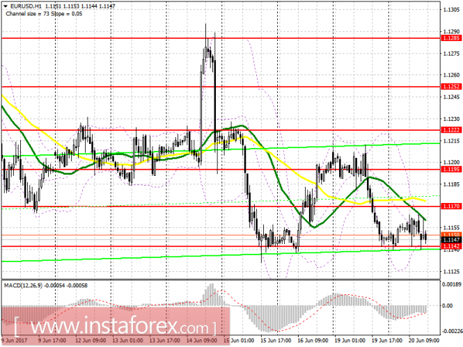 Покупатели сумели удержать в первой половине дня уровень 1.1142, но крупного роста от него так и не произошло. Скорее всего, при повторном снижении в район 1.1142 произойдет его пробой, поэтому рекомендую отказаться от покупок около этого уровня. Более оптимальный сценарий для покупок евро просматривается после закрепления выше 1.1170 либо уже на отскок от нового недельного минимума в районе 1.1111.