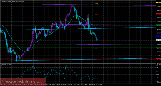Хайкен Аши – индикатор, окрашивающий бары в голубой или фиолетовый цвета.Материал предоставлен компанией InstaForex - www.instaforex.comТехническая картина инструмента GOLD по системе «Каналы регрессии» за 20 июня 2017 года