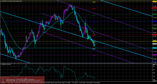 Техническая картина инструмента SILVER по системе «Каналы регрессии» за 20 июня 2017 года