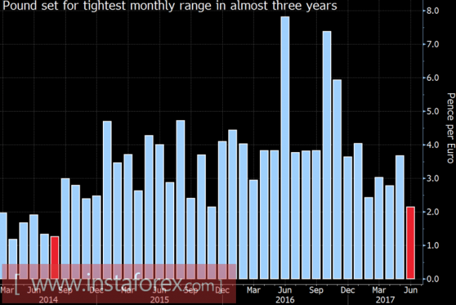 2017-06-19 15:12:53 (читать в оригинале)Британский фунт вопреки неожиданным результатам всеобщих выборов, взвешенному парламенту и проблемам с формированием правительства пытается отметиться самым узким торговым диапазоном за месяц по отношению к евро с 2014, однако старт переговоров Лондона и Брюсселя по поводу Brexit может этому помешать. Потенциальные риски роста волатильности и надежды на резкие колебания GBP/US и EUR/GBP заставляют трейдеров обратить внимание на связанные со стерлингом валютные пары.