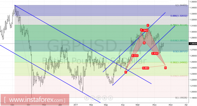 Техническая картина валютной пары GBPUSD по системе «Каналы регрессии» за 20 июня 2017 года