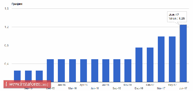Руководители ФРС считают, что перспективы ставок в 2017 и 2018 году не изменились по сравнению с мартовскими прогнозами, что позволяет сделать прогноз в сторону чуть более высокого ВВП. Ожидается более медленный рост инфляции в 2017 году и более низкий уровень безработицы, чем прогнозировалось в марте.