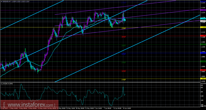 Хайкен Аши – индикатор, окрашивающий бары в голубой или фиолетовый цвета.Материал предоставлен компанией InstaForex - www.instaforex.comТехническая картина валютной пары EURUSD по системе «Каналы регрессии» за 15 июня 2017 года